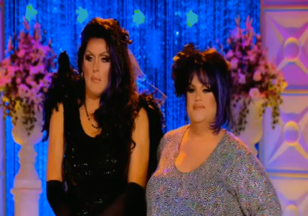 When this makeover challenge rolls around, there is always one guy who is way too into it. Poor Darienne had to deal with this dude. This guy and his fiance were super fans of the show. They even incorporated signature catch phrases from the show into their vows. He also wanted to be a goth bride, which was kind of a bold choice. I think we all know that Ru and the other judges really enjoy some tradition, so even though Darienne was doing what her guy wanted she did get read a little bit. I actually thought that her bridal look wasn't terrible, I had a bigger problem with what Darienne was wearing. That horrible wig and the Lane Bryant blouse? Darienne obviously has no idea what is goth.